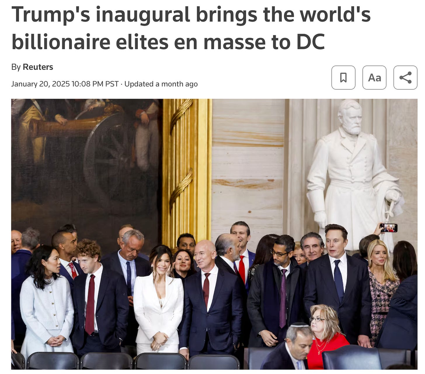 But as elected officials recruited tech-savvy staffers, and agencies like CFPB hired more people like Hand, regulators have become newly effective. (I’ve been talking about this trend for a while.) Lina Khan, head of the FTC, was so aggressive that even Kamala Harris’s corporate backers urged the candidate to fire Khan should Harris win office, a sure sign of her effectiveness. (Political support from business is inevitably contingent on staying out of its way, as I’ve written.) So it’s no suprise that when President Trump invited the CEOs of tech companies to attend his inauguration, most of the executives gathered on the dais were the heads of the very companies CFPB has been looking into, especially as most if not all of them move into financial services. As one CFPB technologist put it to me this weekend, “You’d be hard-pressed to name a big tech company that isn't trying to get into financial services or fintech and isn't also subject to some sort of examination by CFPB.”