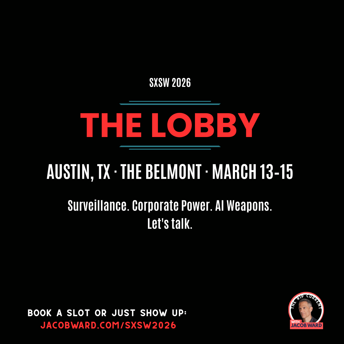 I’ll be in Austin Thursday through Sunday, and I’m keeping my schedule deliberately open. No panels. No green room. Just conversations — the kind that actually move things.