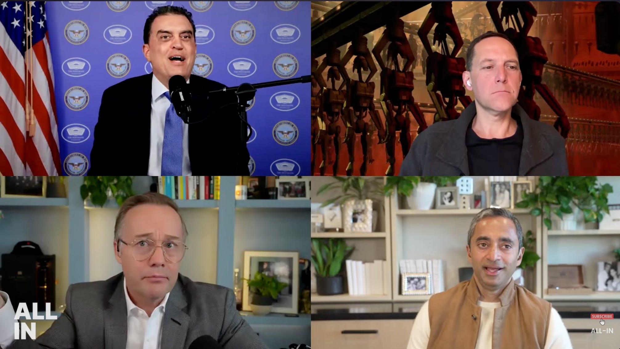 But he didn’t do it in a Senate hearing. There was no long-form interview with a journalist. He did it on his VC friends’ chat show, The All-In Podcast, Episode 263, hosted by Jason Calacanis, Chamath Palihapitiya, and David Friedberg — three venture capitalists whose combined portfolios touch hundreds of tech companies, including some with direct stakes in the defense and AI sectors under discussion. (The fourth host, David Sacks, was absent — busy on Capitol Hill, doing his other job as the White House AI and crypto czar, where he devises White House policies that benefit his business and his friends.) The guest, Emil Michael, is Pete Hegseth’s direct report. He decides how AI is used to make war, and thus decides, as I see it, our future. He is also a former Uber executive and a personal friend of the hosts. During the show he calls them “brother.”